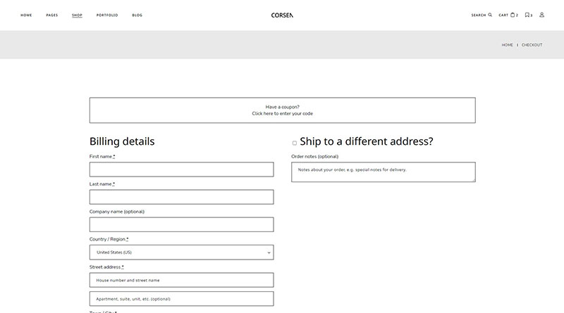 With Corsen you also get a comprehensive, carefully designed cart page template.
